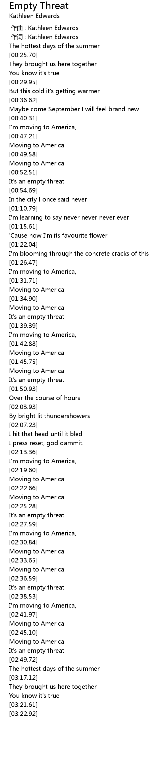 | [00:00.00] | 作曲 : Kathleen Edwards |
