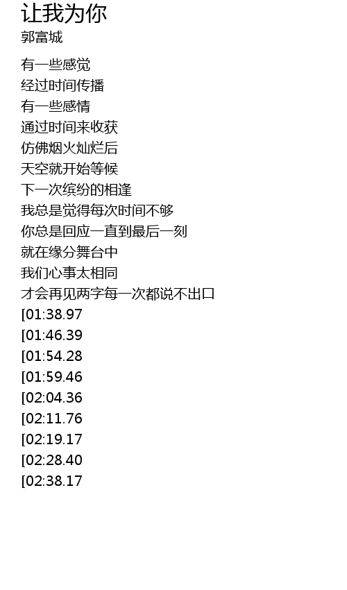 | [03:25.00][01:38.97] | rang wo wei ni ba xin fang qing gan jing |