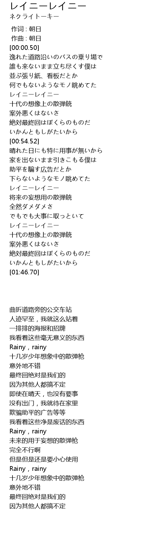 | [00:38.66] | 十代の想像上の散弾銃 |