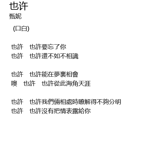 | 也許 也許我們倆相處時瞭解得不夠分明 | |