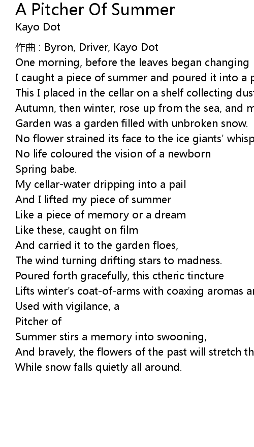 | Song | A Pitcher Of Summer |