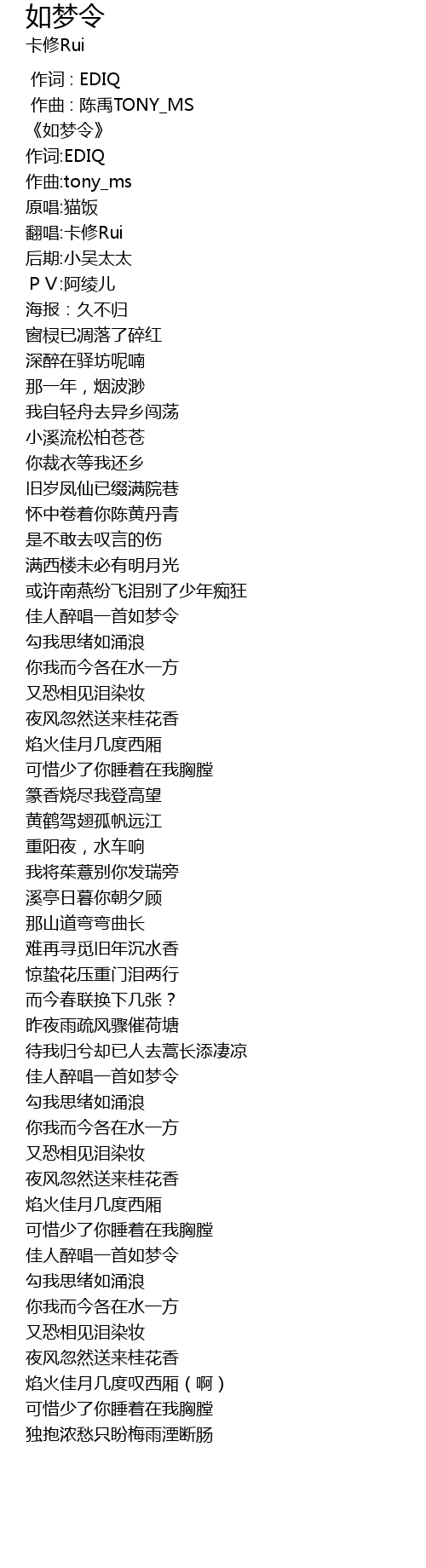 | [02:53.01] | 佳人醉唱一首如梦令 |