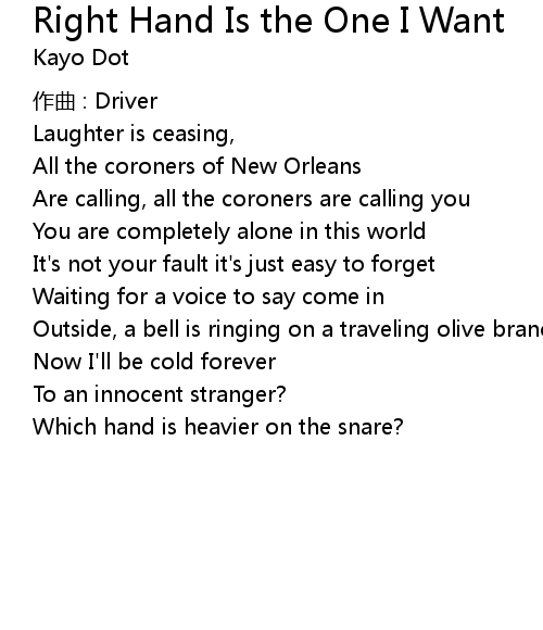 | Song | Right Hand Is the One I Want |