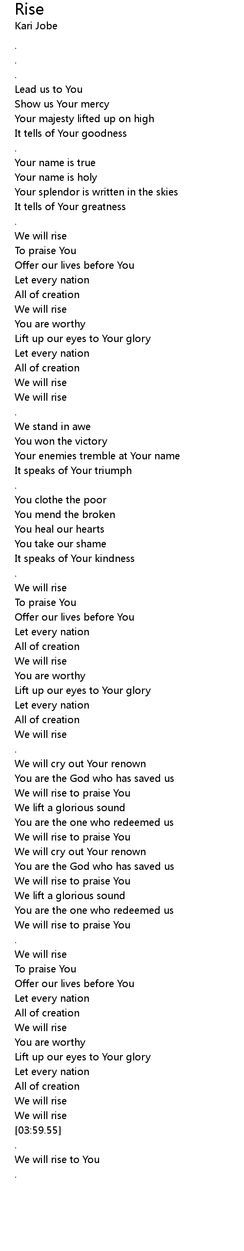 We will rise to praise You |