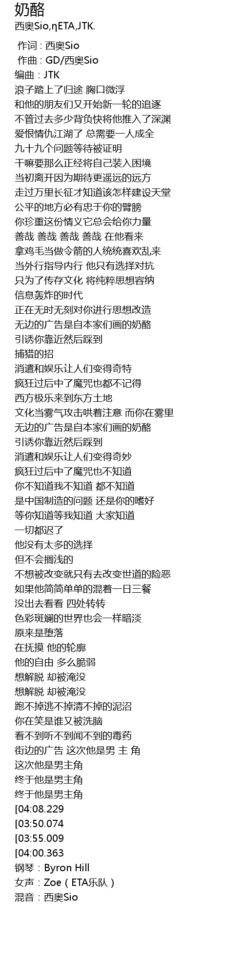 | [04:33.961] | 女声:Zoe(ETA乐队) |