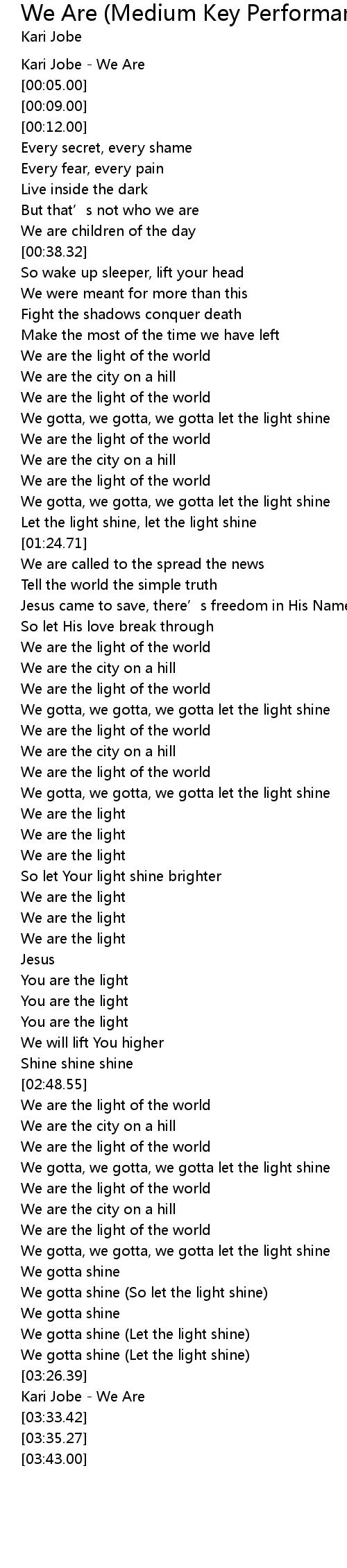 | [03:28.75] | Kari Jobe - We Are |