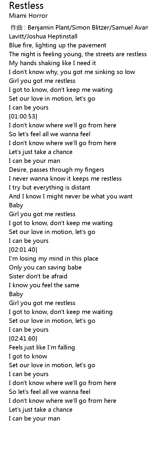 | [01:45.79] | Girl you got me restless |