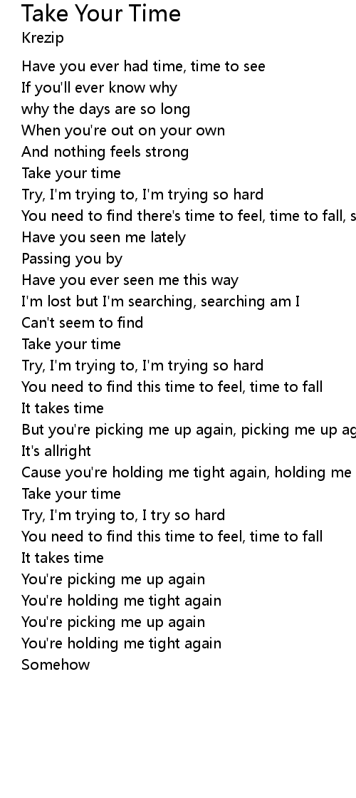 You need to find there's time to feel, time to fall, somehow |