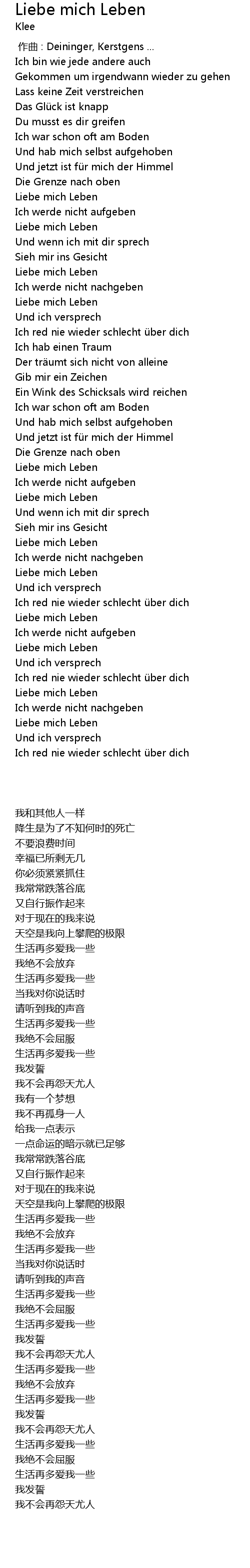 | [02:33.88] | Liebe mich Leben |