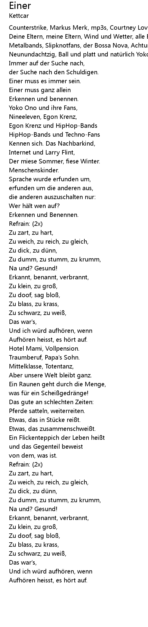 | Metalbands, Slipknotfans, der Bossa Nova, Achtundsechtzig, | |