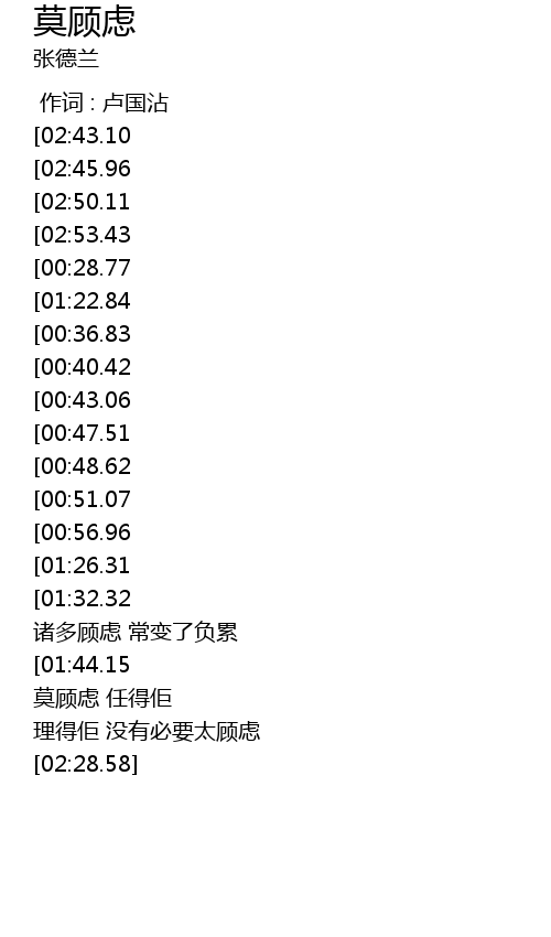 | [02:15.30] | 莫顾虑 任得佢 |