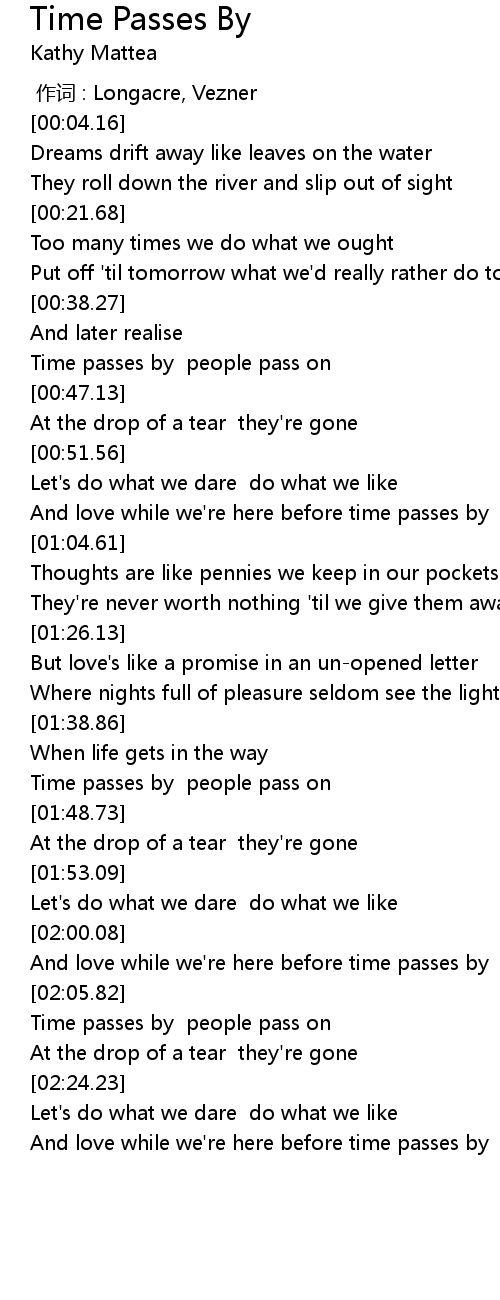 | [01:44.10] | Time passes by people pass on |