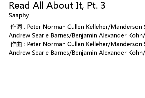 | [00:00.000] | zuò qǔ : Peter Norman Cullen Kelleher Manderson Stephen Thomas Andrew Searle Barnes Benjamin Alexander Kohn James Iain Sande Emeli |