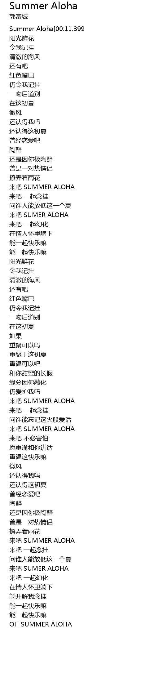 | [00:11.399] | Summer Aloha guo fu cheng |