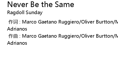 | [00:00.000] | 作曲 : Marco Gaetano Ruggiero/Oliver Burtton/Manuel Piedade/Adonis Adrianos |