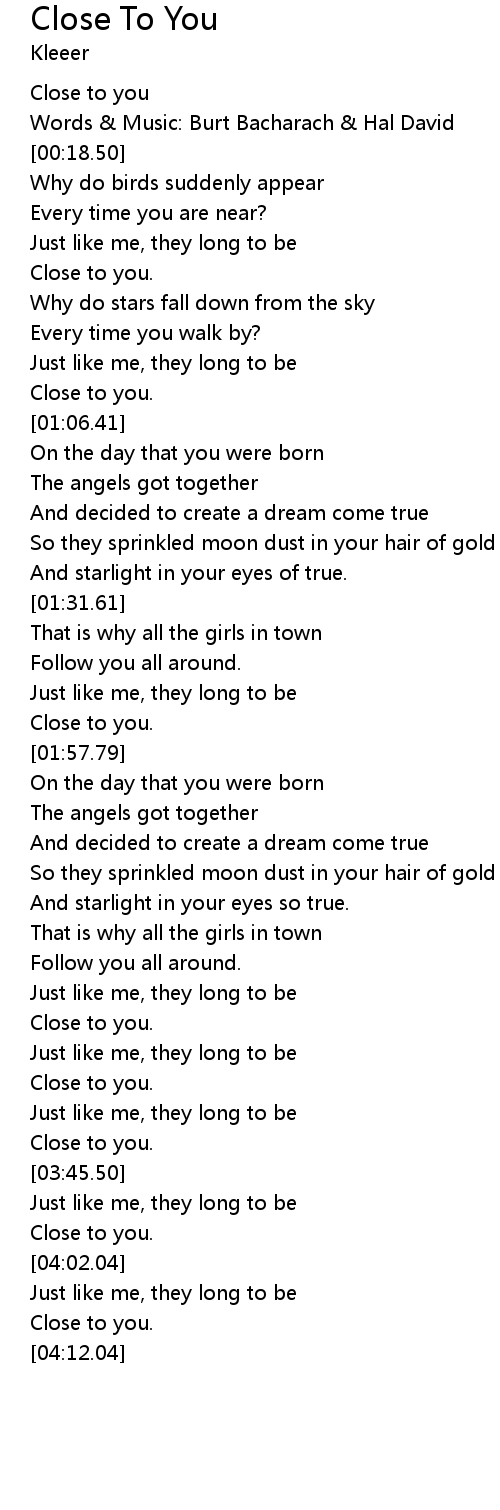 | [00:03.50] | Words & Music: Burt Bacharach & Hal David |