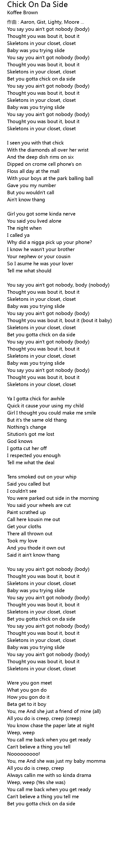 | Bet you gotta chick on da side Verse 2: Girl' s verse | |