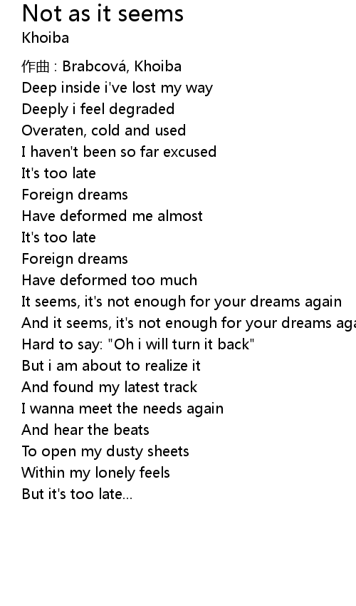 | Song | Not as it seems |