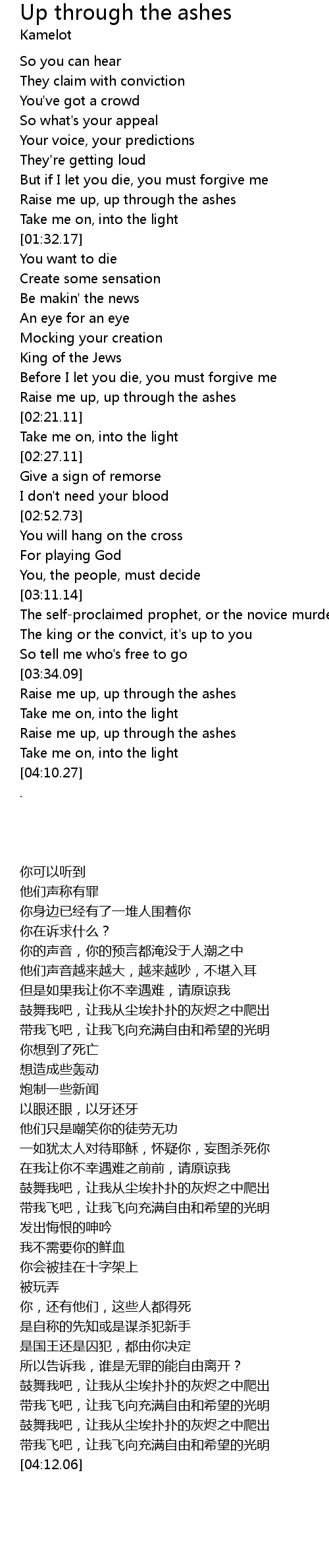 Raise me up, up through the ashes |