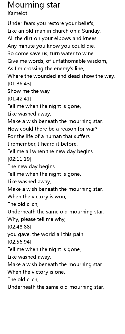 Underneath the same old mourning star. |