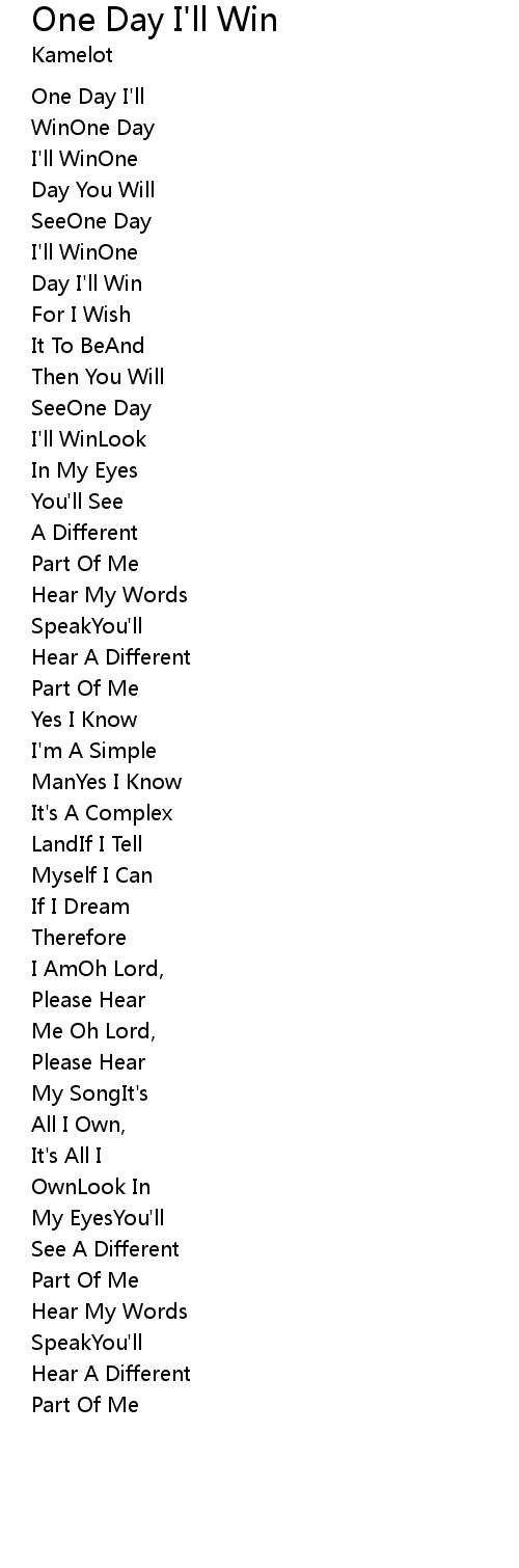 - One Day I'll Win
