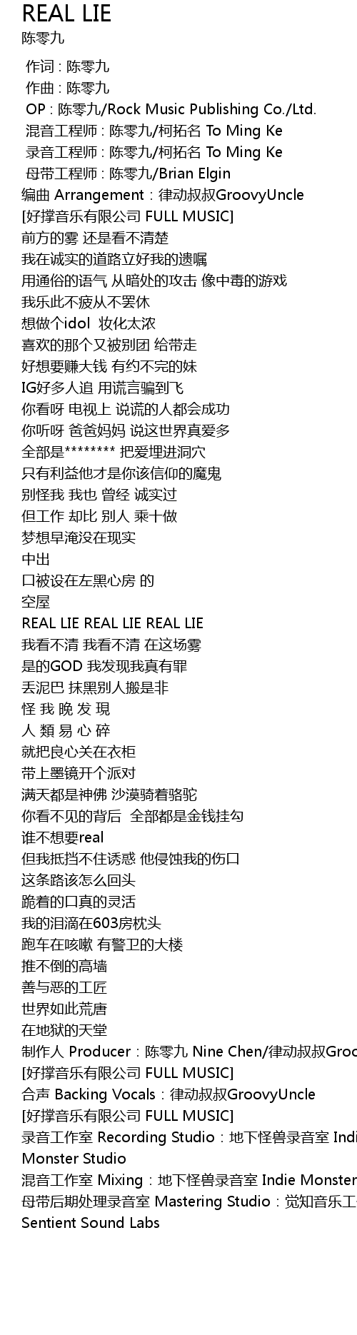 | [00:01.278] | OP : 陈零九/Rock Music Publishing Co./Ltd. |