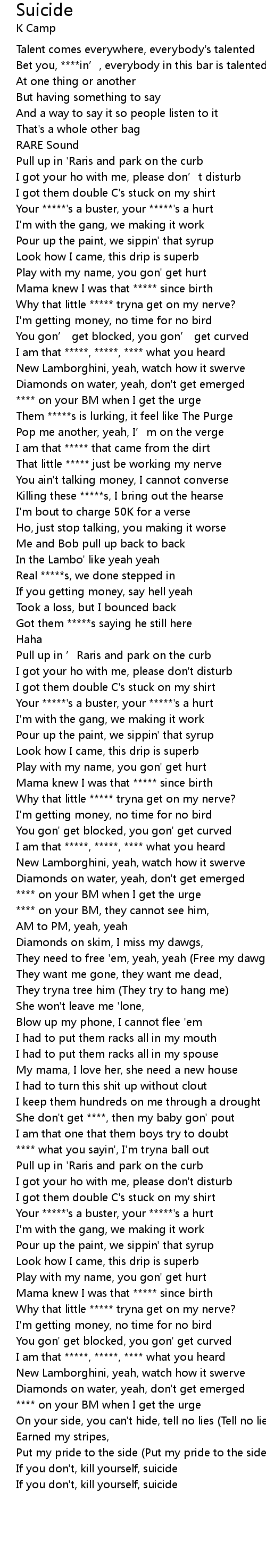 | [02:57.08] | If you don't, kill yourself, suicide |