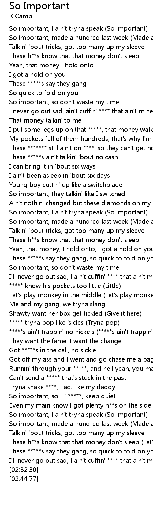 So important, so lil' *****, keep quiet |