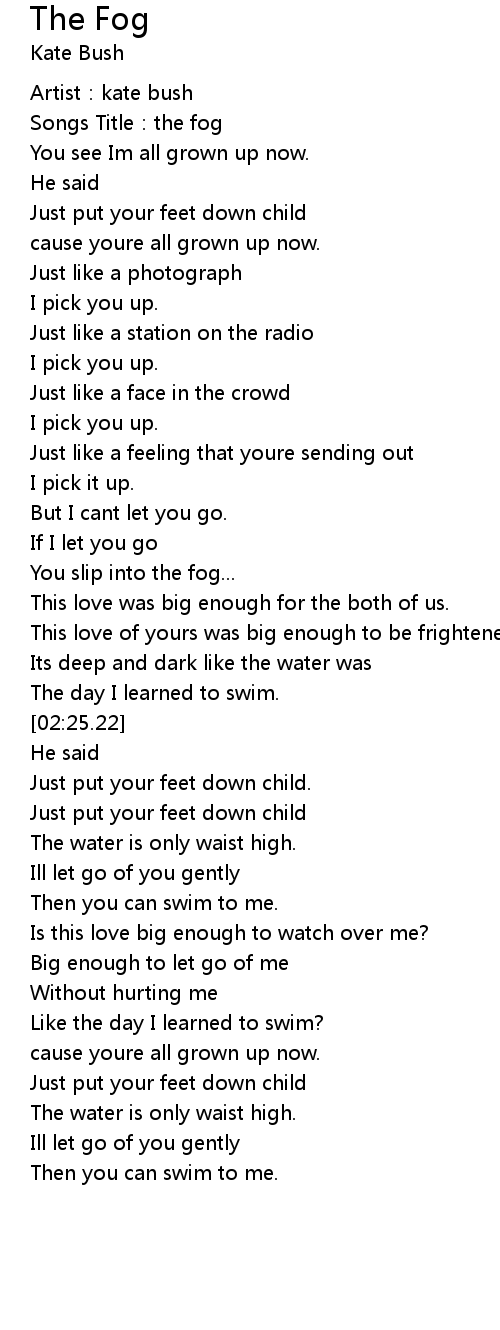 | [02:05.95] | This love of yours was big enough to be frightened of. |