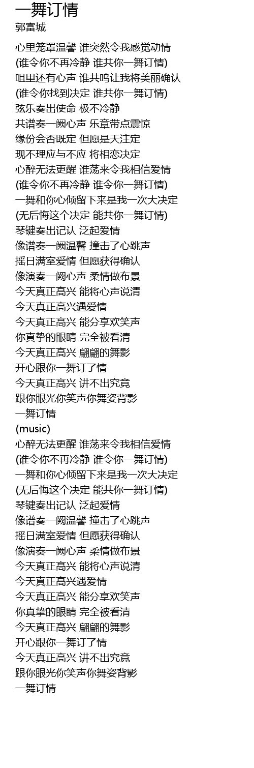| [00:49.497] | (谁令你找到决定 谁共你一舞订情) |