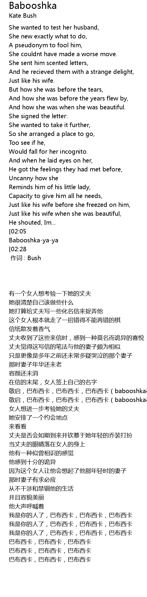 | Song | Babooshka |