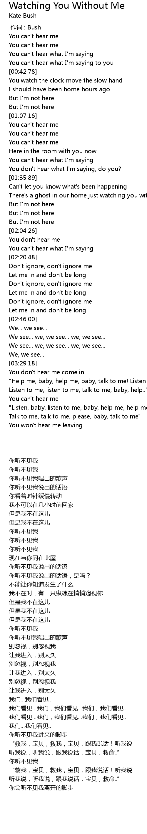 | [01:44.09] | There's a ghost in our home just watching you without me |