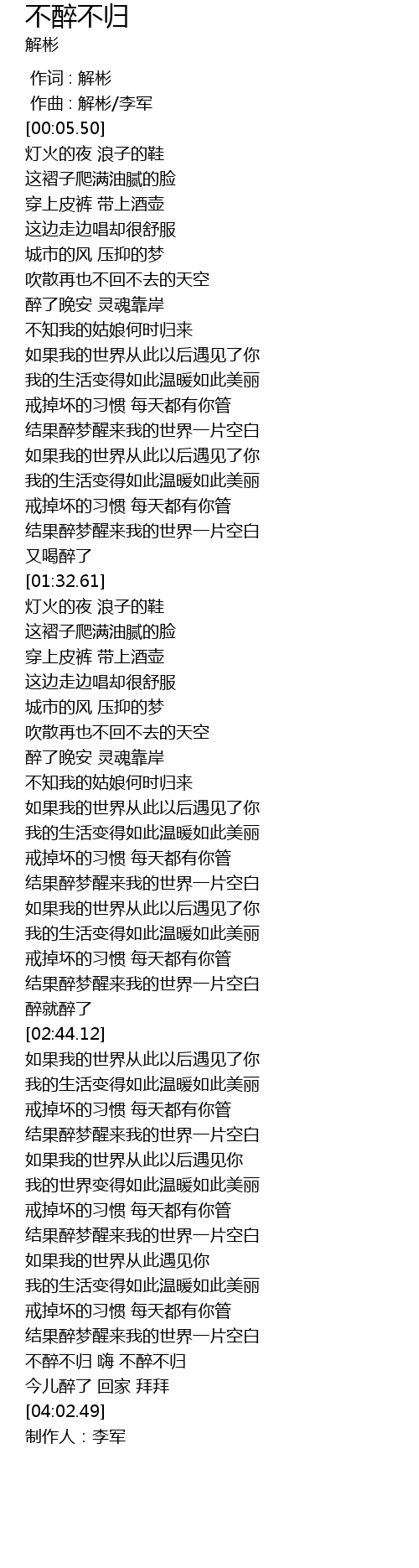 | [03:55.31] | 今儿醉了 回家 拜拜 |