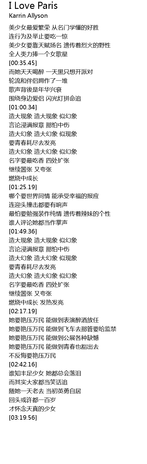 | [02:29.26] | 她要艳压万民 能做到公展各种缺憾 |