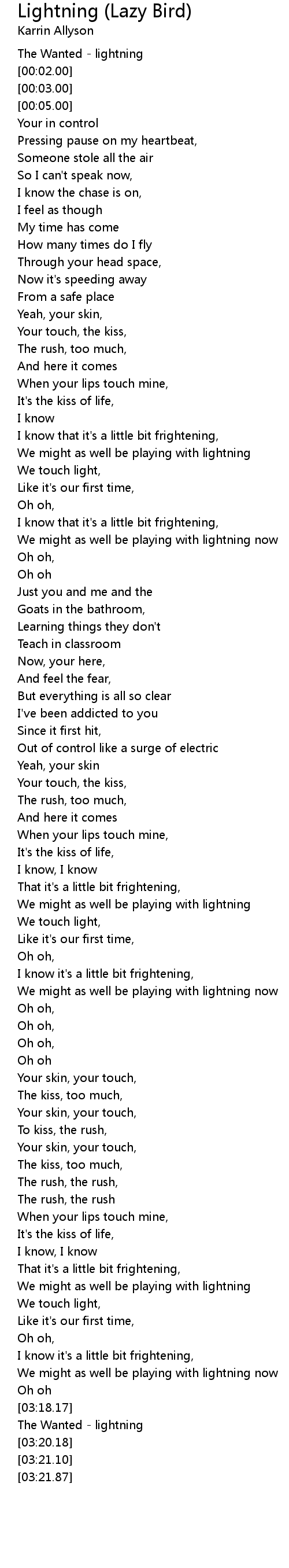 [03:19.10] The Wanted - lightning