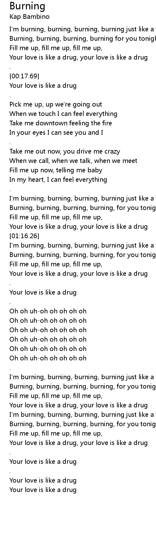 I'm burning, burning, burning, burning just like a fire, |
