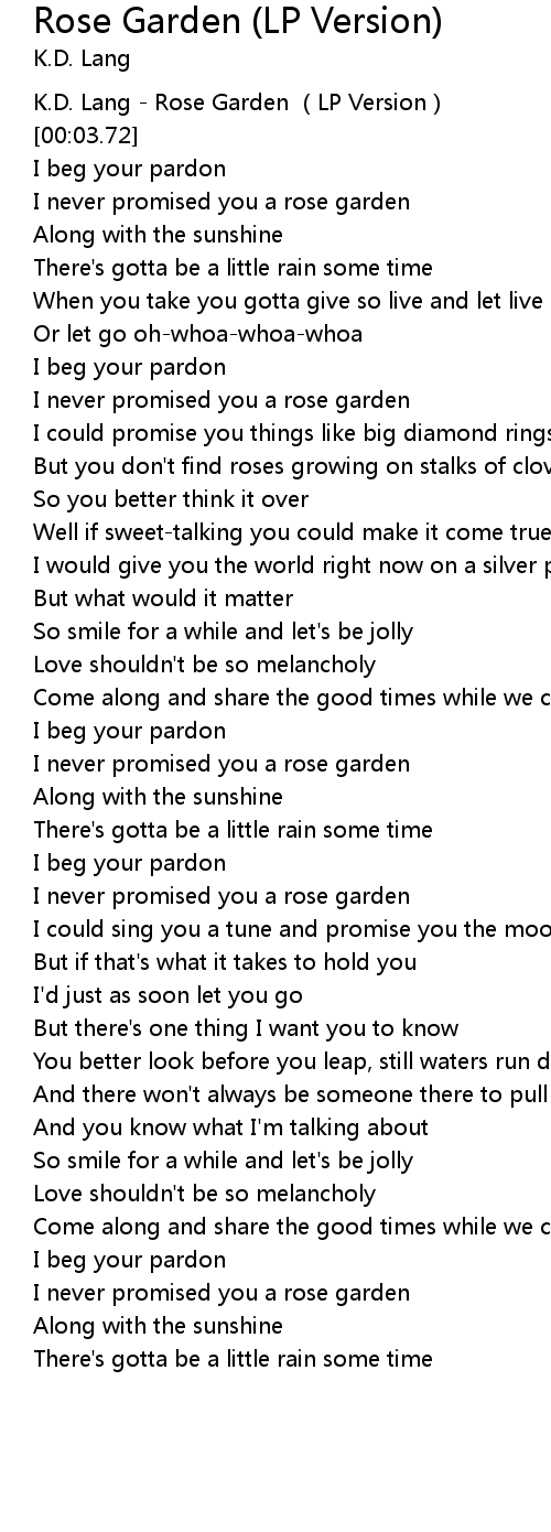 | [00:01.68] | K. D. Lang Rose Garden LP Version |