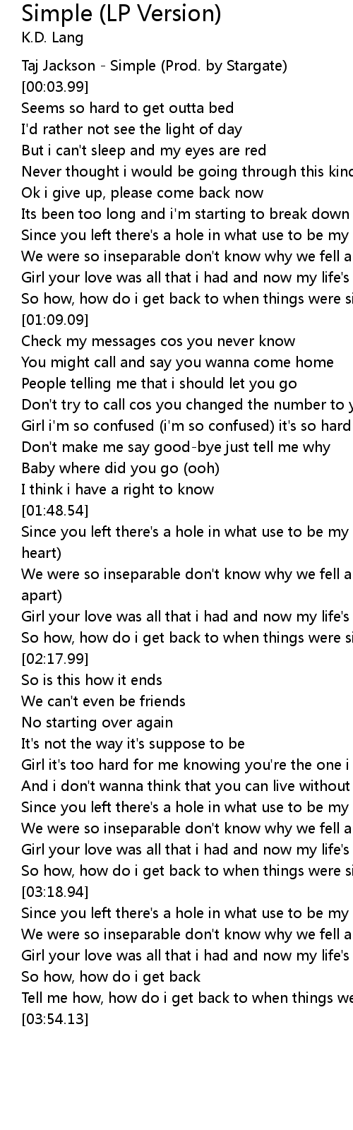 Tell me how, how do i get back to when things were simple |