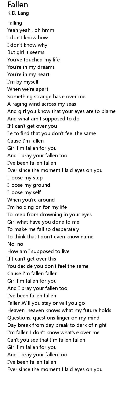 I'm fallen I don't know what's.e over me |