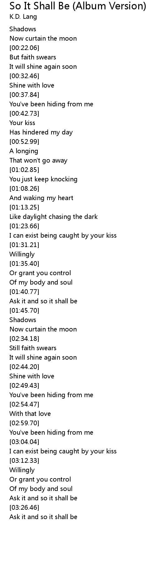 | [01:41.43] | Ask it and so it shall be |