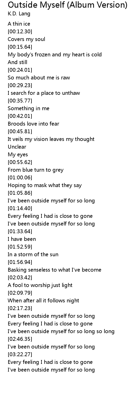 | [03:29.58] | I've been outside myself for so long |