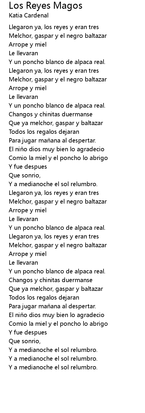 | [01:46.000] | Que ya melchor, gaspar y baltazar |