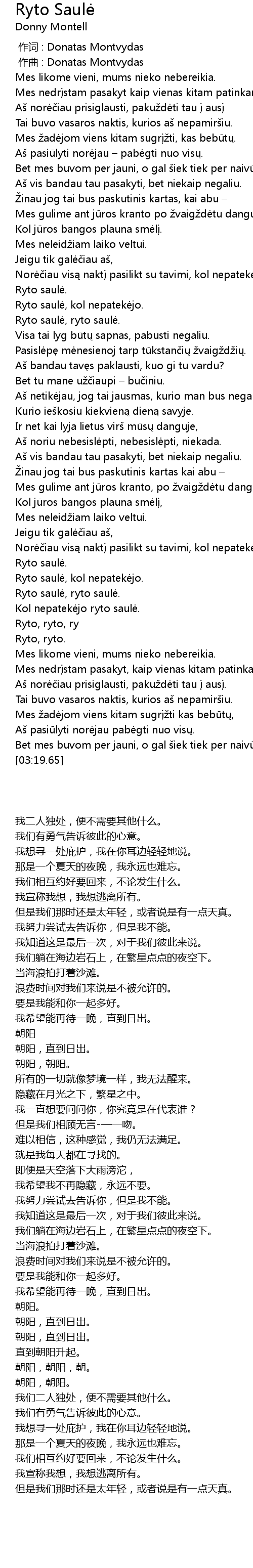 | [01:08.92] | Ryto saul, kol nepatek jo. |