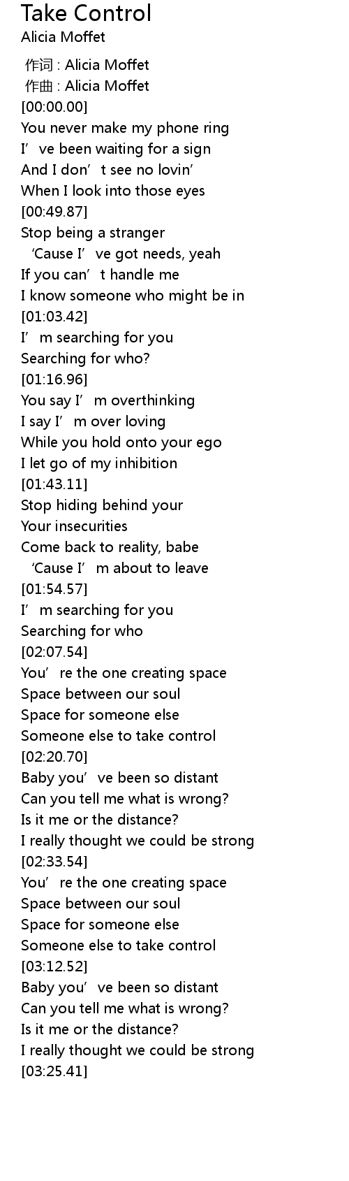 | [02:17.63] | Someone else to take control |