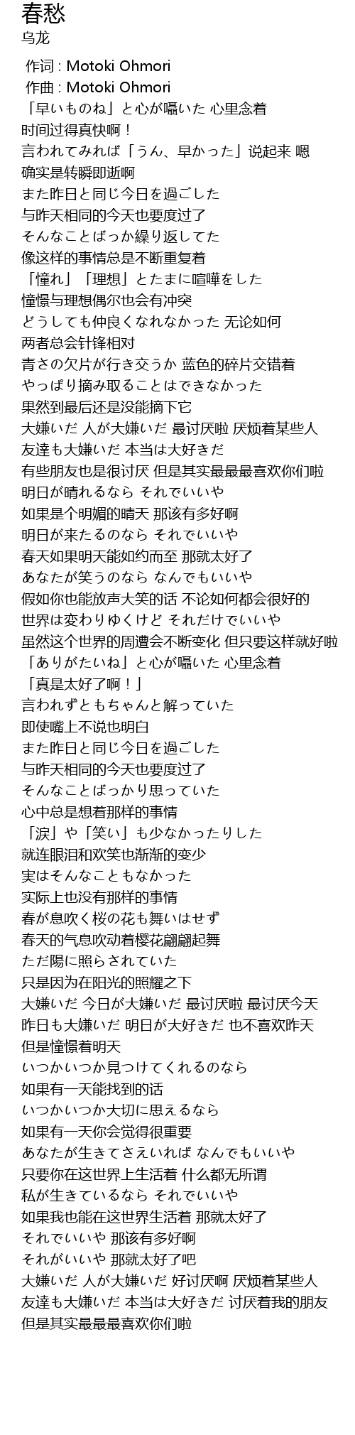 | [00:00.000] | zuò cí : Motoki Ohmori |