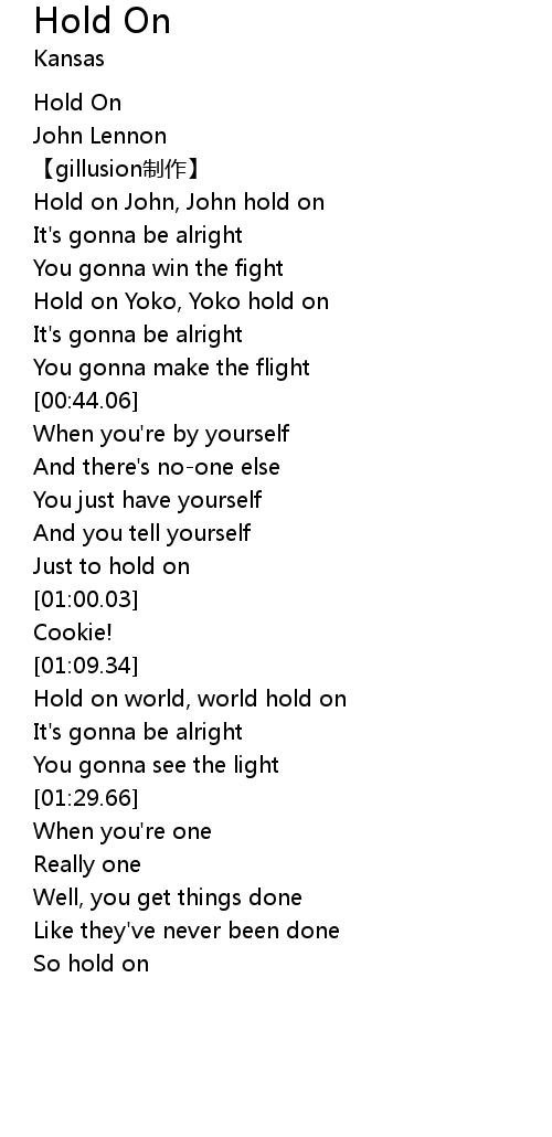 | [00:30.56] | Hold on Yoko, Yoko hold on |