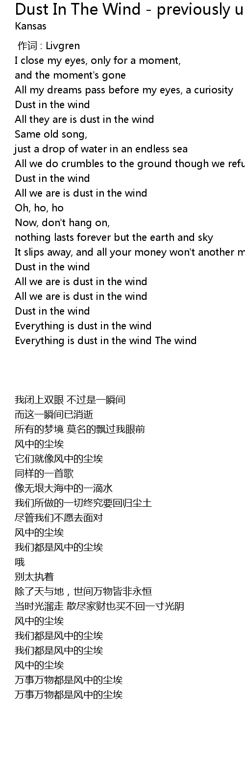 | [00:31.11] | All my dreams pass before my eyes, a curiosity |