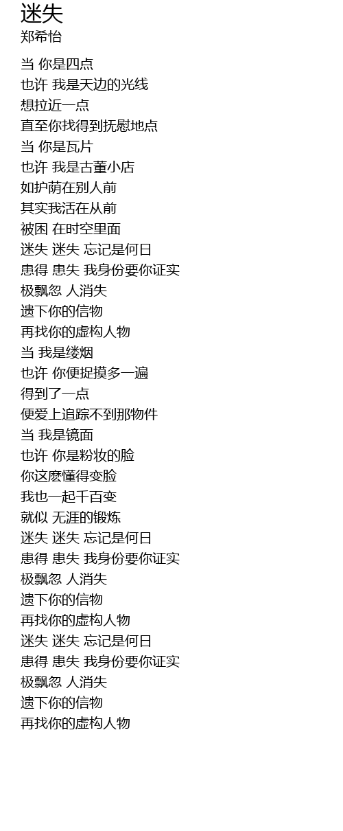 | Song | 迷失 |