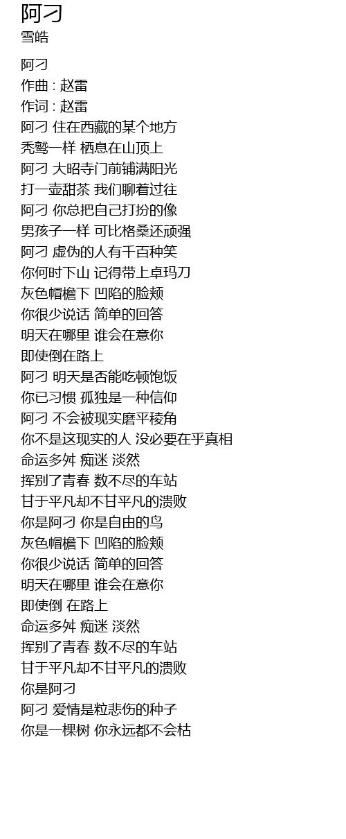 | [03:58.650] | 你是阿刁 你是自由的鸟 |