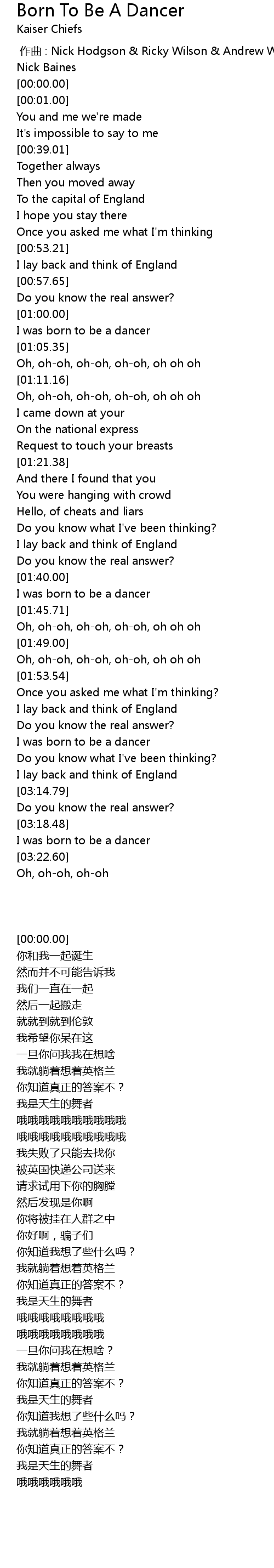 | [03:19.42] | I was born to be a dancer |